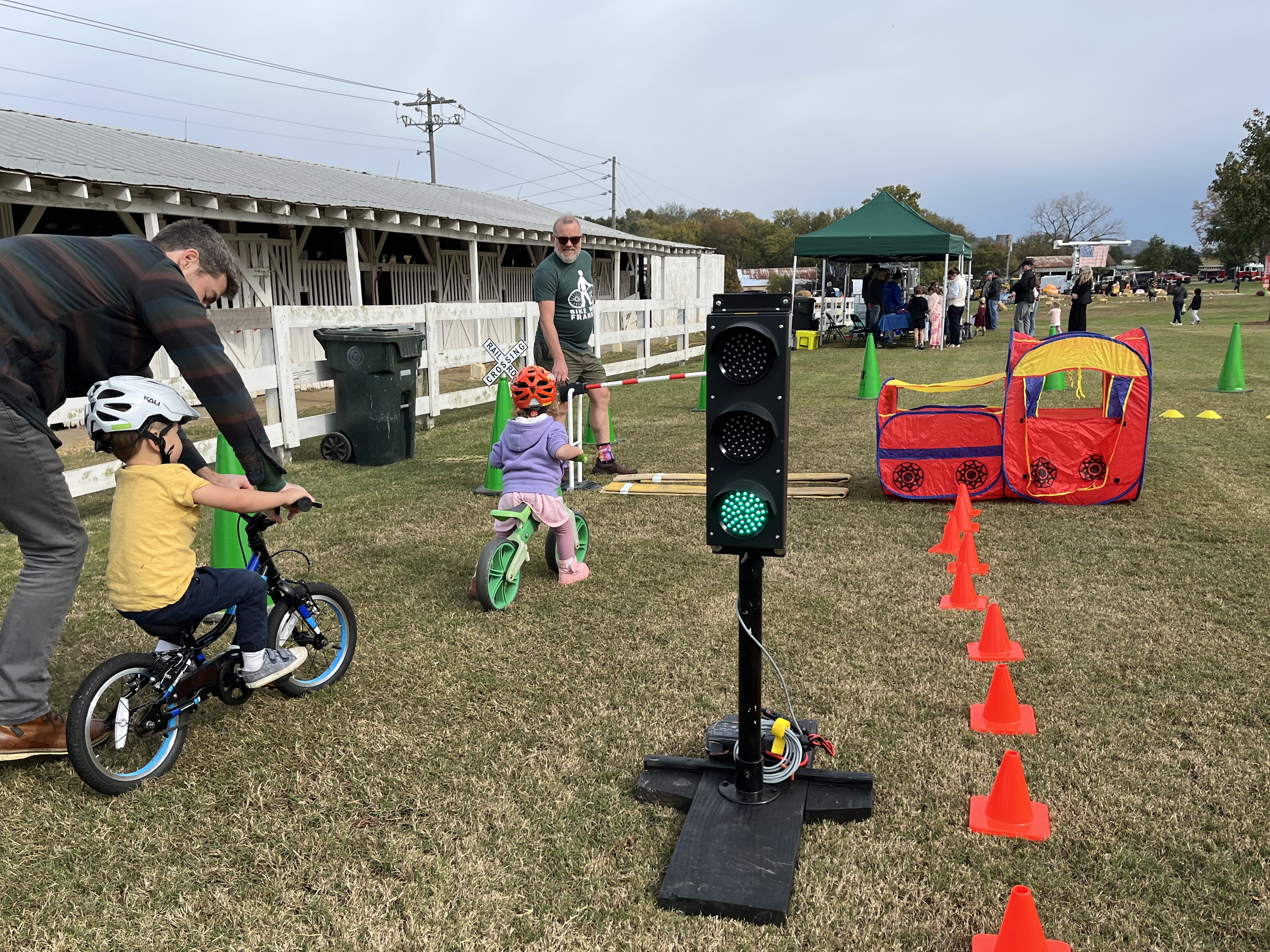We had a blast running our bike rodeo for a second year at City of Franklin Parks Family Day. Hosting the course on grass made it a little more challenging for the youngest riders to get rolling, but was also a more forgiving surface if they lost their balance. We counted more than 300 children coming by our tent, and loved getting them rolling past our traffic light, railroad track, tunnel, bubble machine, and speed bumps.