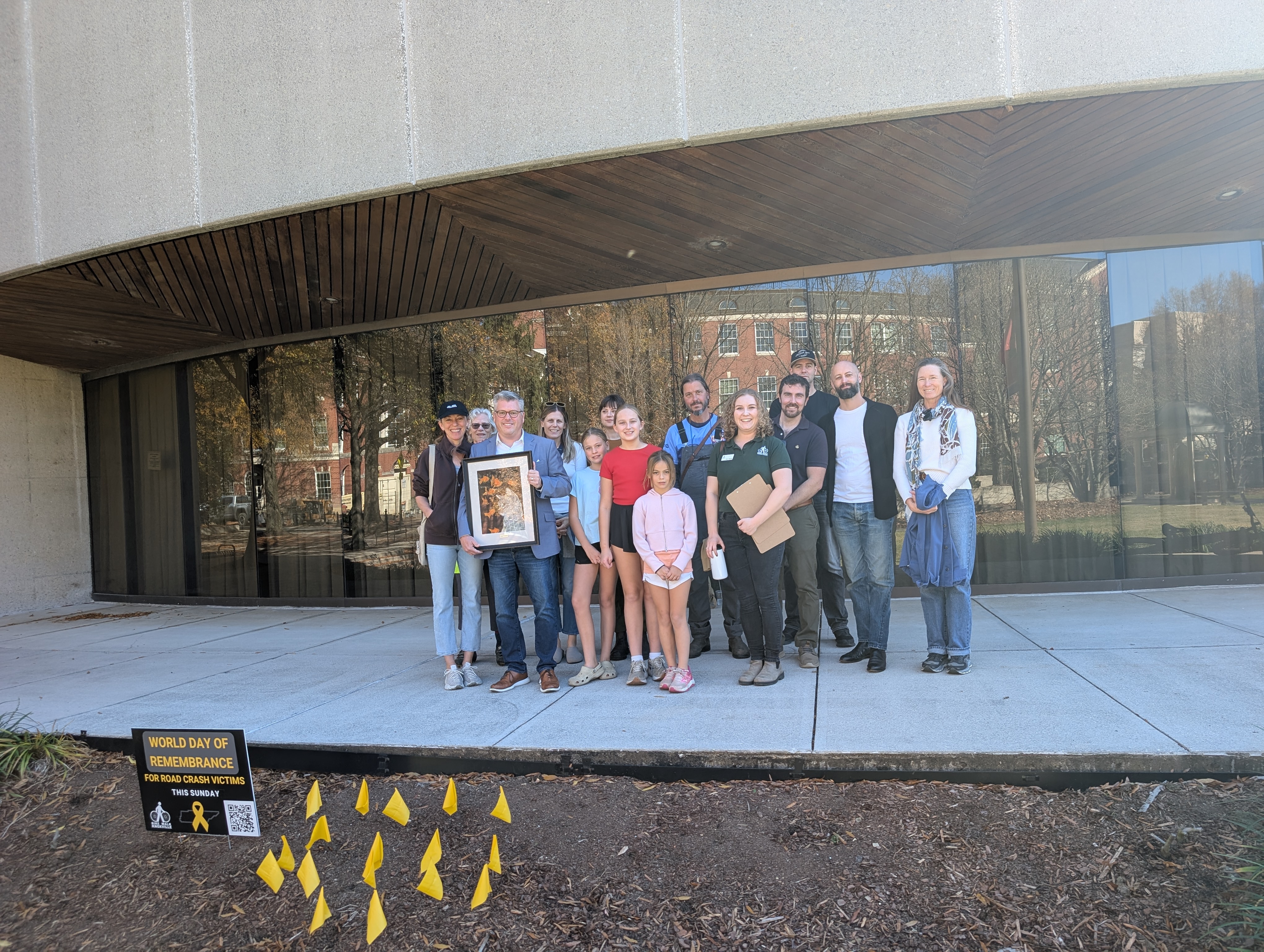 Bike Walk Knoxville would like to thank everyone who joined us to commemorate World Day of Remembrance in November. The event was a powerful opportunity to memorialize the lives lost to traffic violence in our community and call for action for safer streets. We would like to thank each of our speakers for sharing their stories of being personally impacted by a crash: City Councilman and father to Kylie, Andrew Roberto, advocate and mother to Ben, Kim Kredich, and Vision Zero Committee Chair and crash survivor Bryan Hill. We would also like to acknowledge City of Knoxville Vision Zero Coordinator Cody Gentry and Knoxville’s work to eliminate fatalities and serious injuries on our streets by 2040.